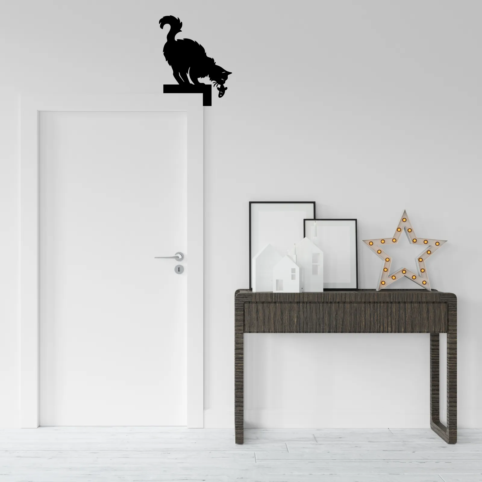 -Ağzında taze avıyla duran bu kedi silüeti, evinize hem doğal hem de modern bir hava katacak.