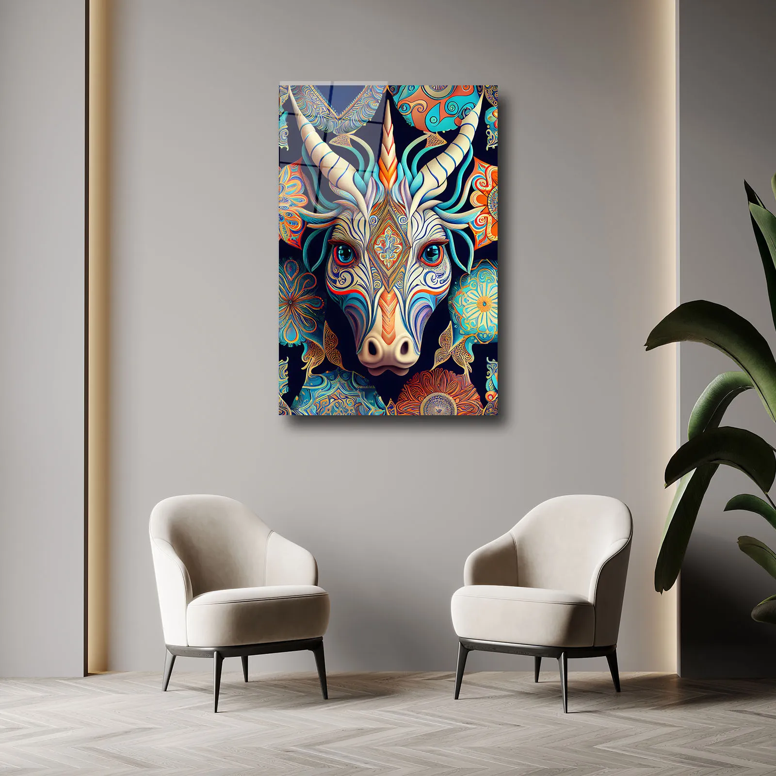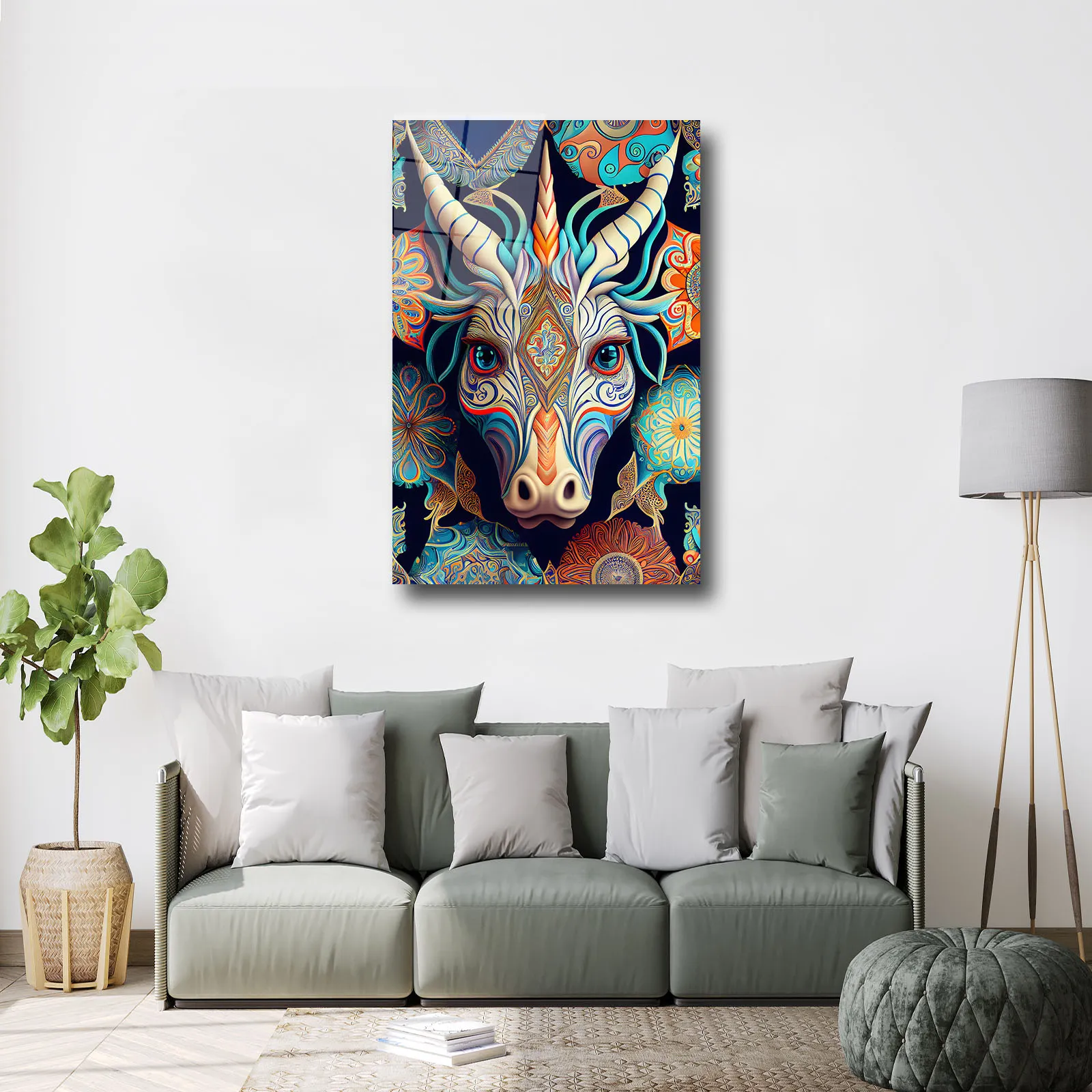 Artello Decor Mistik Boğa Cam Tablo – Rengarenk Mandala Desenli Modern Sanat